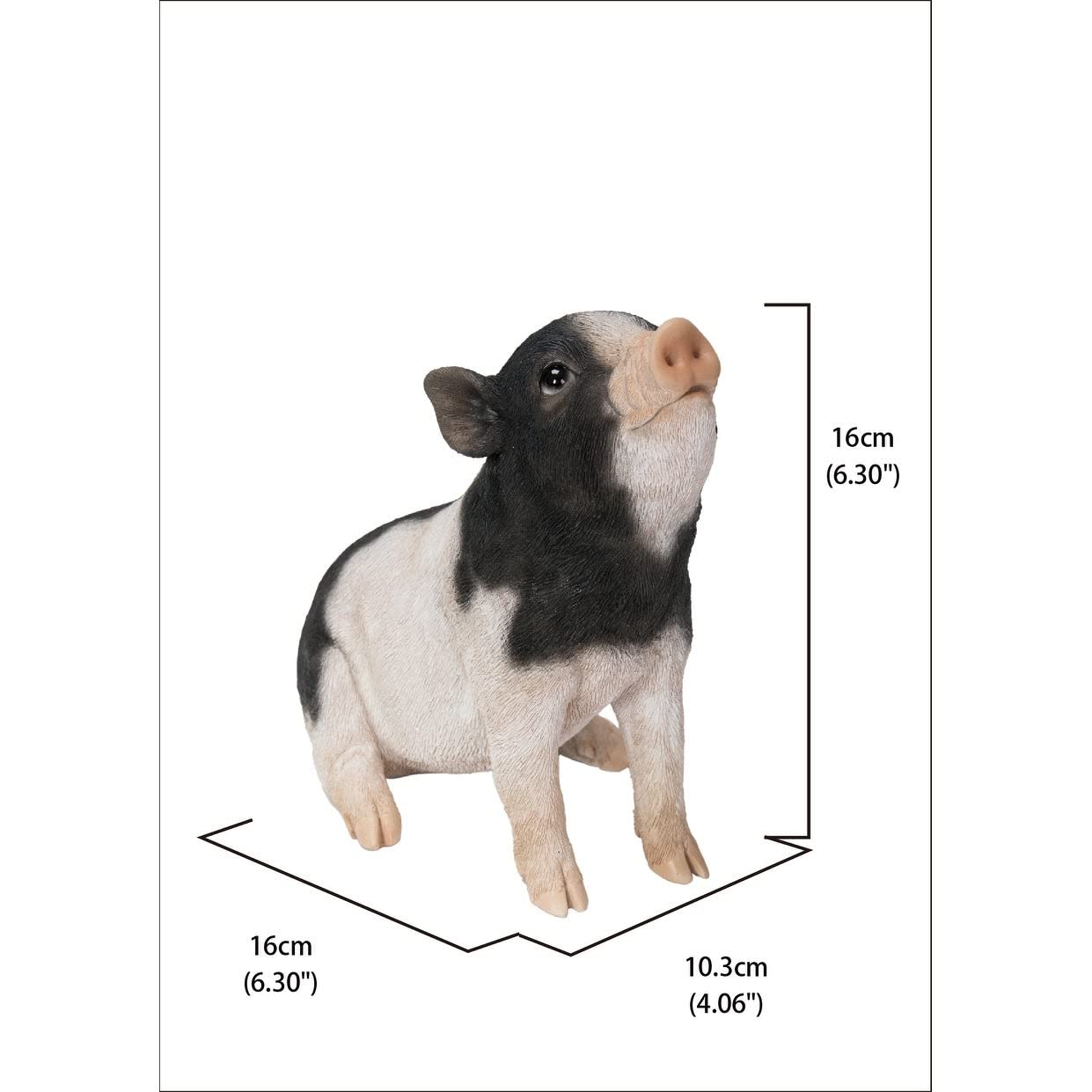 Baby Pig Sitting Black And White Ultra Realistic Garden Statue Multi Color Polyresin | Material : Polyresin | Product Size: 6.3 In. L X 4.06 In. W X 6.3 In. H.