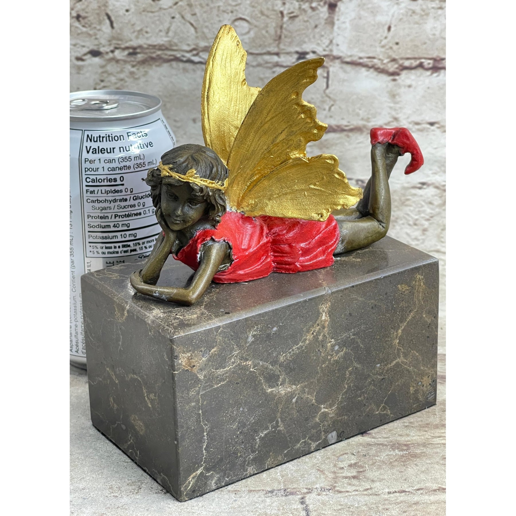 Colorful Resting Fairy Girl Child Bronze etal Figurine Sculpture On